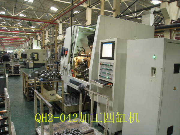 QH2-042變力曲軸圓角滾壓及滾壓校直機床(發(fā)明專利號1823602)是與武漢理工大學(xué)共同開發(fā)的一款高檔數(shù)控設(shè)備。該機床為九鉗直立布置,可以一次性對所有四缸曲軸完成的變力滾壓,自動檢測和自動滾壓校直的加工。該機床帶有測力器,自動檢測工件零位,自動檢測記錄工件加工情況和滾輪破碎自動檢測等功能,可以完全保證工件的加工質(zhì)量。具備與著名德國的圓角滾壓設(shè)備制造商Hegenscheidt公司產(chǎn)品同樣的功能,具有極高的性價比。