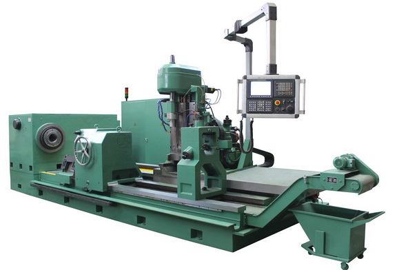 1.機(jī)床的主要用途和適用范圍及特點(diǎn)。 本機(jī)床系我公司開發(fā)的大規(guī)格花鍵軸銑床,本機(jī)床采用滾銑法可加工各種齒型的直斜齒花鍵軸零件,及直斜齒聯(lián)軸齒輪,并可以加工錐度花鍵及臺(tái)階齒輪。 本機(jī)床采用FANUC 0i-D交流伺服系統(tǒng),用交流伺服電機(jī)來控制銑頭的縱、橫向的定位、進(jìn)給及加工時(shí)各順序動(dòng)作的轉(zhuǎn)換,實(shí)現(xiàn)刀具的無極調(diào)速, 實(shí)現(xiàn)銑刀的自動(dòng)調(diào)度,實(shí)現(xiàn)高速干切。具有可靠性高,保護(hù)功能完善等特點(diǎn)。 特別適用于成批和大量生產(chǎn)的工廠。 機(jī)床可選擇“順銑”或“逆銑”加工方式工作。 機(jī)床有自動(dòng)竄刀機(jī)構(gòu),用于對(duì)刀和提高刀具壽命。 機(jī)床備有磁性排屑器。 機(jī)床備有中心架。 機(jī)床備有拖架,用于大型工件的支撐. 為提高機(jī)床的動(dòng)靜剛度,床身采用加厚壁和閉肋筋的封閉結(jié)構(gòu),導(dǎo)軌為加寬的重型導(dǎo)軌。 尾座移動(dòng)采用齒輪齒條的結(jié)構(gòu)。